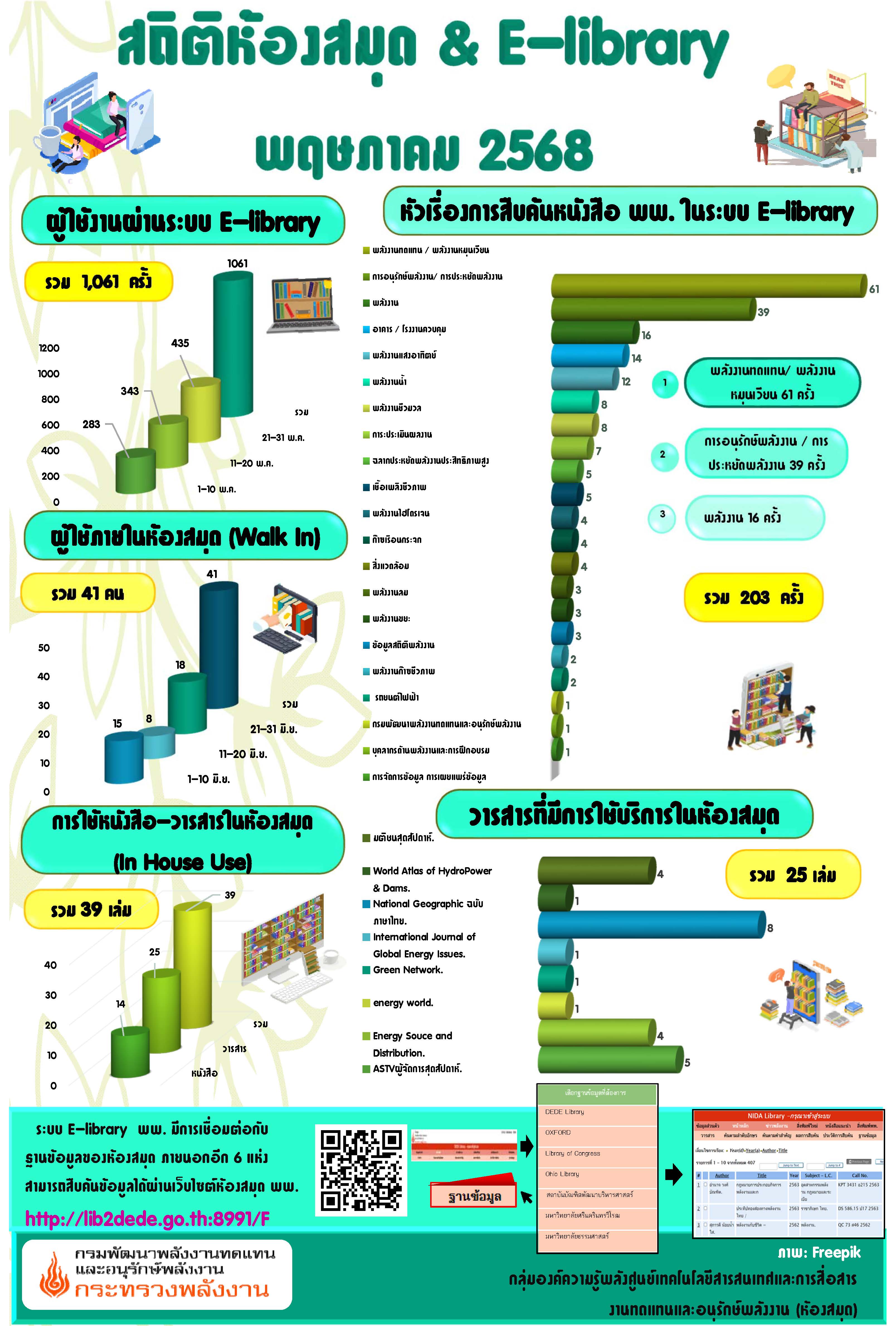 สถิติการใช้งานห้องสมุด พพ. ประจำเดือน พฤษภาคม 2568