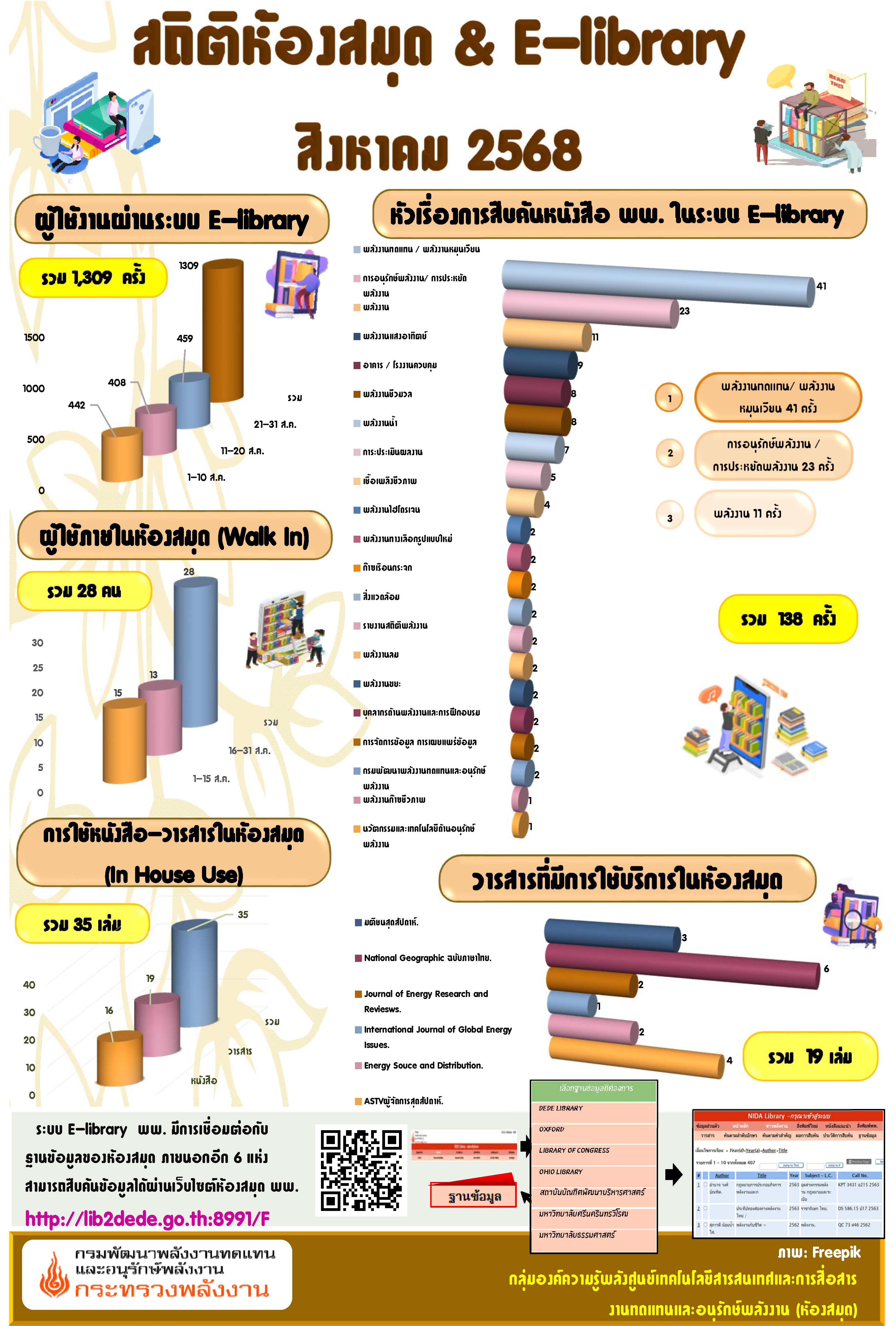 สถิติการใช้งานห้องสมุด พพ. ประจำเดือน สิงหาคม 2568