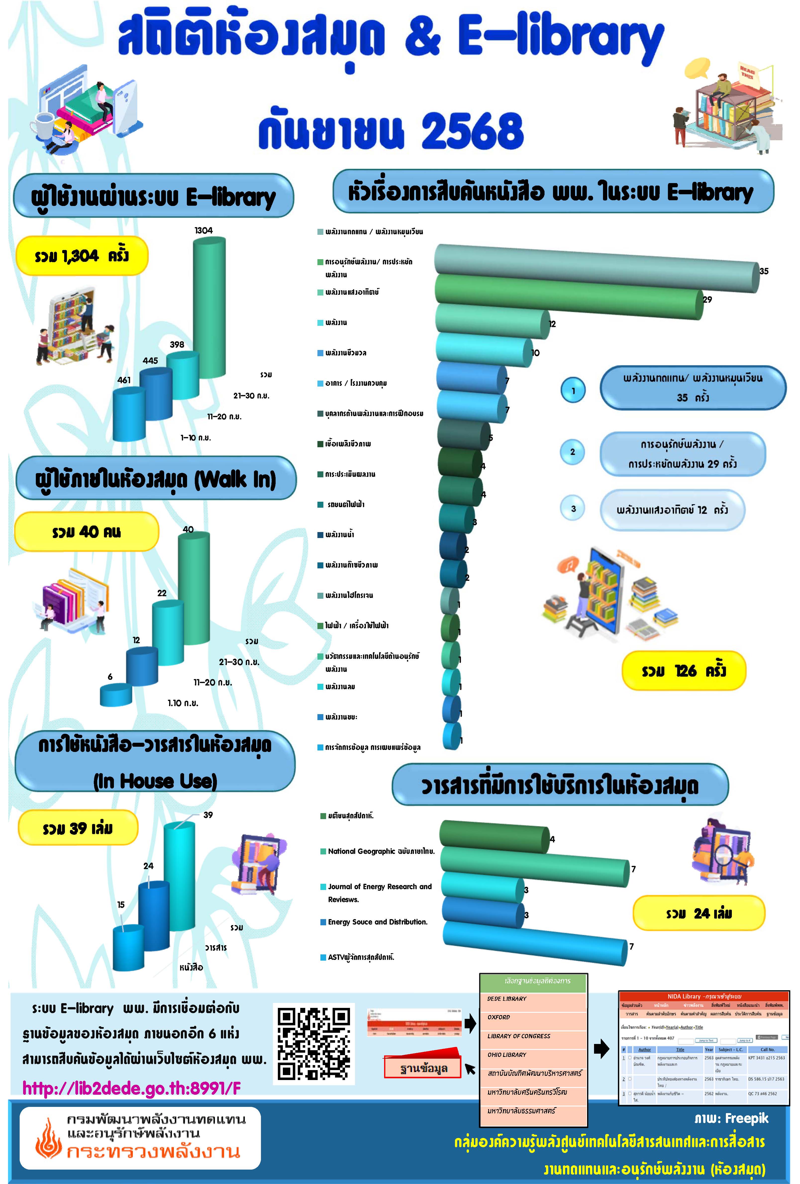 สถิติการใช้งานห้องสมุด พพ. ประจำเดือน กันยายน 2568